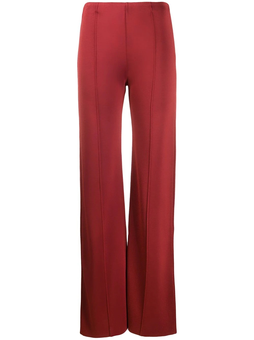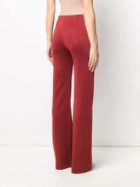 tailored flared trousers Rendered in a dark shade of red, these trousers from Valentino Garavani are crafted in Italy and cut to a tailored silhouette - a nod to the house's penchant for timeless and well-crafted designs. Sitting high at the waist, the pair falls to a flared leg. Highlights - Valentino ready to wear - Red - Tailored design - High-waisted - Flared - Piped-trim detailing Made in Italy Composition Viscose 100% SIZE & FIT Model measurements Height 5 ft 10 in(1.78 m) Bust/Chest 34.25 in(87 cm) Hips 35.03 in(89 cm) Waist 26.37 in(67 cm) FittingInformation This piece fits true to size. We recommend you get your regular size Designed to be fitted at the waist and through the thigh, loose from the knee Made with a heavyweight fabric Washing instructions Read Manufacturer Guidelines