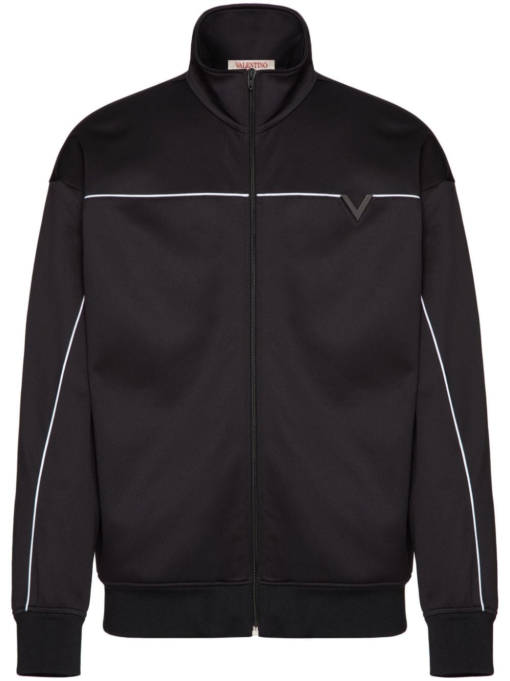 V-detail sweatshirt Highlights - Black - Jersey texture - Piped-trim detailing - Logo plaque - Stand-up collar - Front zip fastening - Drop shoulder - Long sleeves - Ribbed cuffs and hem - Two side inset pockets - Full lining Made in Italy Composition Fabric 100%