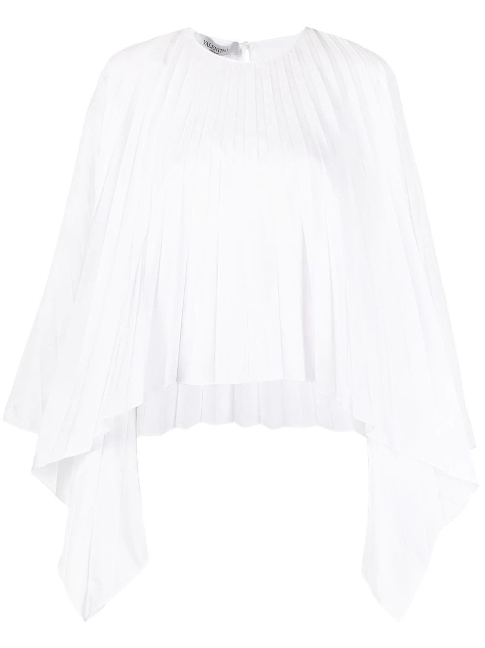 pleated bell-sleeves top Highlights - Valentino ready to wear - White - Fully pleated - Round neck - Keyhole detail to the rear - Bell sleeves Made in Italy Composition Cotton 54%, Polyester 46% SIZE & FIT Model measurements Height 5 ft 10 in(1.78 m) Bust/Chest 33.07 in(84 cm) Hips 33.07 in(84 cm) Waist 24.4 in(62 cm) FittingInformation This piece fits true to size. We recommend you get your regular size Cut for a loose fit Made with a mid-weight non-stretch fabric Washing instructions Read Manufacturer Guidelines