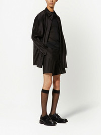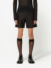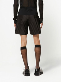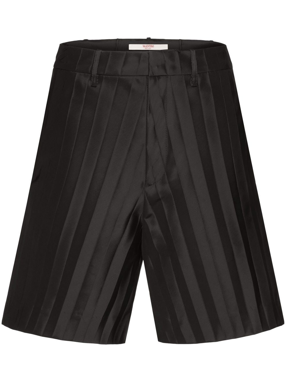 pleated tailored shorts Valentino Garavani revisits the classic tailored shorts and updates them with a fully pleated construction. The diagonally folded texture provides a modern touch to the timeless pair. Highlights - Valentino ready to wear - Black - Fully pleated - Belt loops - Two side welt pockets - Two rear flap pockets - Above-knee length - The full look includes valentino garavani accessories. Made in Italy Composition Outer: Polyamide 100% Lining: Cupro 100% Washing instructions Read Manufacturer Guidelines