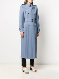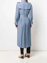 pleated trench coat If you are bored with your usual trench coat but it is time to look up for something different like this pleated trench coat from Valentino. Spun from sumptuous silk, this trench coat combines equal doses of elegance and feminity. Focus on those pleats! Featuring a classic collar, a double breasted front fastening, epaulettes on the shoulders, long sleeves, a belted waist, a storm flap, a mid-length and a pleated design. Made in Italy Composition Outer: Silk 100%, Calf Leather 100% Lining: Viscose 59%, Silk 41% SIZE & FIT Measurement SLEEVE LENGTH 16.53 in(42 cm) Shoulder Width 16.53 in(42 cm) LENGTH 50.78 in(129 cm) BUST 37.79 in(96 cm) Washing instructions Read Manufacturer Guidelines