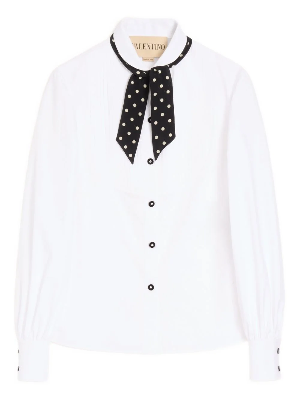 Plusdepois-tie top Highlights - Valentino top - White - Polka dot print - Front button closure - Tie detail - Long sleeves - Buttoned cuffs - The full look includes valentino garavani accessories. Made in Italy Composition Cotton 100% Washing instructions Read Manufacturer Guidelines