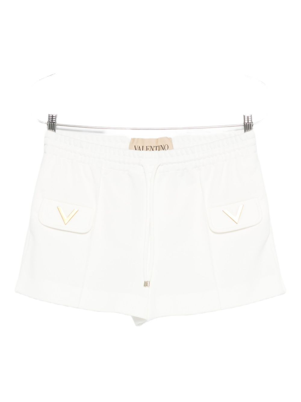 pocket-detail drawstring shorts Highlights - White - Drawstring fastening - Metallic v-shaped embellishment Made in Italy Composition Lining: Cupro 100% Outer: Polyester 90%, Elastane 10% SIZE & FIT Model measurements Height 5 ft 11 in(1.8 m) Bust/Chest 32.67 in(83 cm) Hips 36.22 in(92 cm) Waist 24.4 in(62 cm) Washing instructions Dry Clean Only