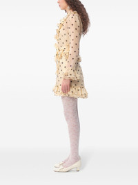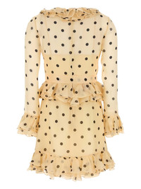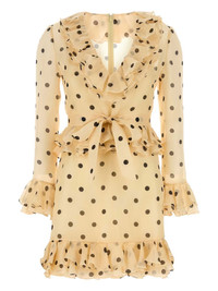 polka dot-print organza mini dress Highlights - Product is available to be shipped - Beige - Polka dot print - V-neck - Long sleeves - Semi-sheer sleeves - Ruffled detailing - Tied waist - Flared hem - Thigh-length Made in Italy Composition Lining: Silk 100% Outer: Silk Organza 100%
