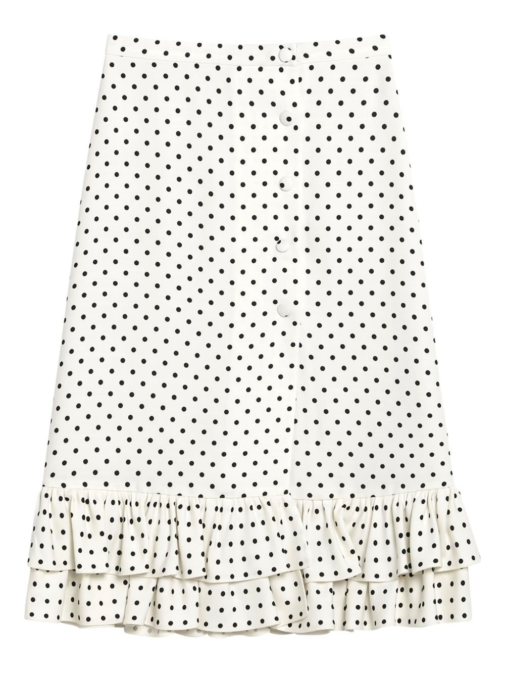 polka dot-print midi skirt Highlights - White - Concealed side zip fastening - High-waisted - Ruffle hem - Full lining Made in Italy Composition Polyester 100%, Viscose 100%