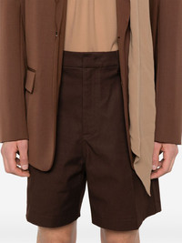 pressed-crease shorts Highlights - Chocolate brown - Cotton blend - Stretch-design - Pressed crease - Belt loops - Two diagonal pockets to the sides - Two rear patch pockets - Concealed front button, hook and zip fastening Made in Italy Composition Cotton 98%, Elastane 2% Lining: Cotton 100% SIZE & FIT Model measurements Height 6 ft 1 in(1.85 m) Bust/Chest 35.82 in(91 cm) Hips 37.79 in(96 cm) Waist 29.13 in(74 cm) FittingInformation Designed with a wide leg, offering a loose and roomy fit Made from a midweight stretch fabric, this piece offers elasticity and flexibility when worn This piece fits true to size – take your usual size