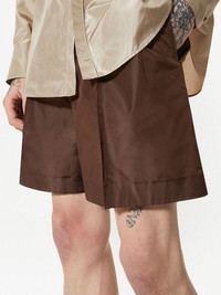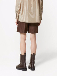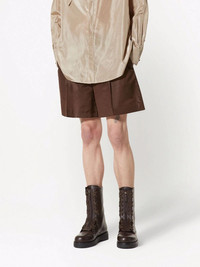pressed-crease tailored shorts Valentino Garavani adds a minimalist edge to the brand's signature opulence in this pair of shorts from the SS22 collection. Featuring a tonal colourway, tailored construction and pressed-crease detailing, the garment has a timeless feel. Highlights - Valentino ready to wear - Brown - Silk - Tonal design - Concealed front fastening - Two side slit pockets - Pressed crease Made in Italy Composition Silk 100% SIZE & FIT Measurement FRONT RISE 12.59 in(32 cm) Washing instructions Read Manufacturer Guidelines