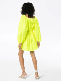 puff sleeve mini dress Well that's one way to make an entrance? Valentino's neon-yellow mini dress is sure to get you noticed from a mile away. An it was all yellow...Featuring a square neck, a pleated skirt and puff sleeves. Made in Italy Composition Polyester 100% SIZE & FIT Model measurements Height 5 ft 10 in(1.78 m) Bust/Chest 33.07 in(84 cm) Hips 36.61 in(93 cm) Waist 24.8 in(63 cm) FittingInformation This piece fits true to size. We recommend you get your regular size Designed for a loose fit with a close fit at the waist Made with a mid-weight non-stretch fabric Washing instructions Read Manufacturer Guidelines