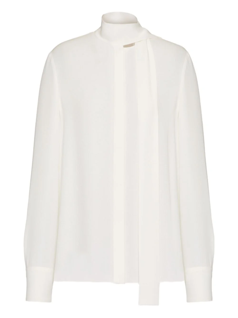 georgette silk top Delicately crafted from pure silk, this tailored shirt from Valentino Garavani has a slender scarf detail at the neck. This classic silhouette is presented in a white hue. Highlights - White - Silk - Scarf detailing - Concealed front fastening - Long sleeves - Buttoned cuffs Made in Italy Composition Silk 100% SIZE & FIT Measurement SLEEVE LENGTH 24.01 in(61 cm) HIPS 42.91 in(109 cm) LENGTH 26.77 in(68 cm) WAIST 40.15 in(102 cm) FittingInformation Designed to be unstructured, offering a loose fit throughout Made from a lightweight non-stretch fabric This piece fits true to size – take your usual size Washing instructions Read Manufacturer Guidelines