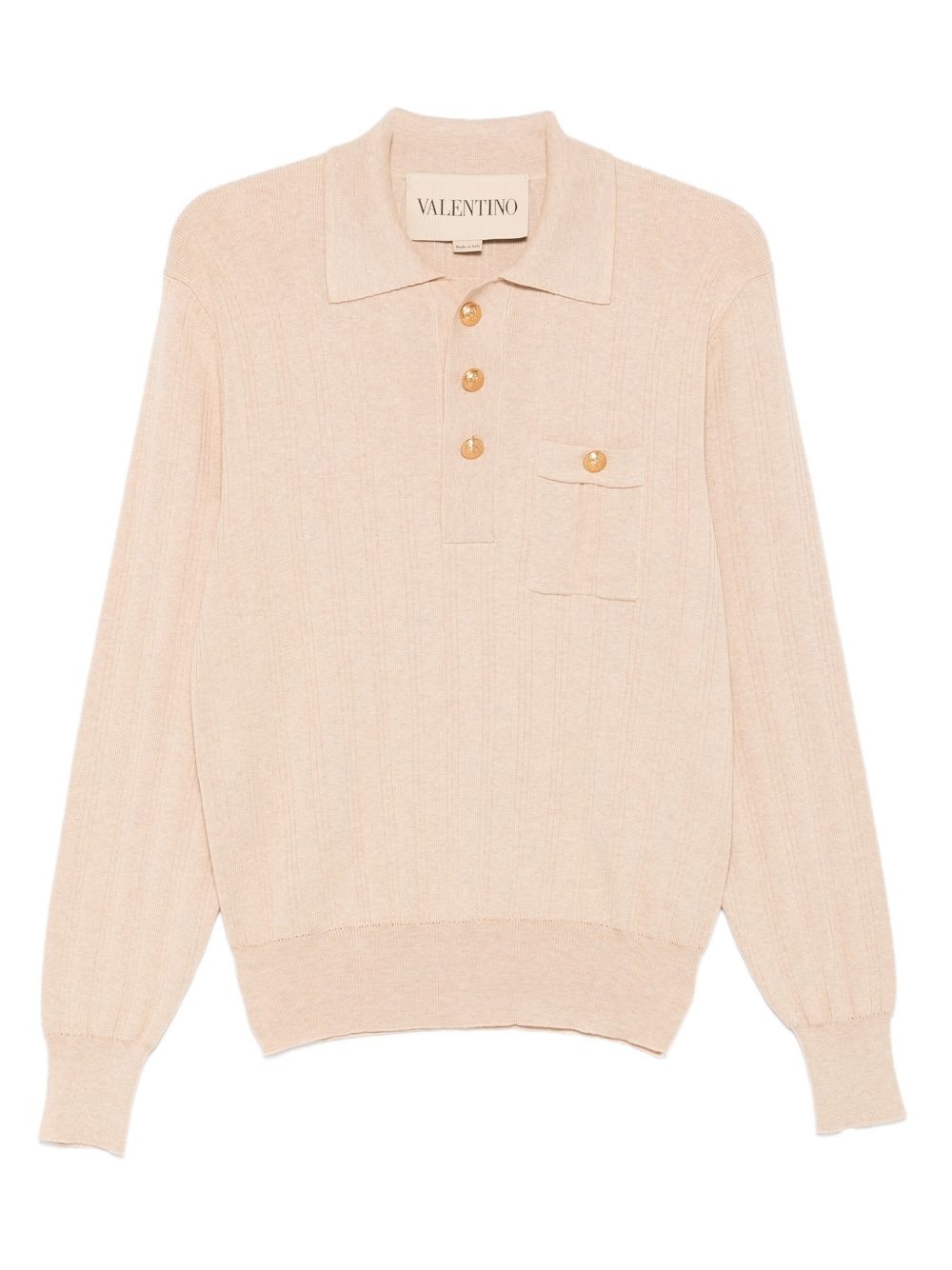 ribbed cotton polo shirt Highlights - Blush beige - Ribbed knit - Long sleeves - Polo collar - Button placket Made in Italy Composition Cotton 100% Washing instructions Dry Clean Only