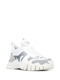 Rockrunner Plus low-top sneakers Military-style is trending this season. Case in point: these coveted white and silvery camouflage calf leather Valentino Garavani Rockrunner Plus sneakers. Lead the fashion brigade in this army-inspired pair. Highlights - Valentino ready to wear - White/grey - Calf leather - Camouflage print - Rockstud embellishment - Ridged rubber sole - Front lace-up fastening - Logo patch at the tongue - Pull tab at the heel - Ridged rubber sole Made in Italy Composition Lining: Bos Taurus 100%, Polyester 100% Outer: Calf Leather 100%, Polyamide 80%, Spandex/Elastane 20% Sole: Rubber 100% SIZE & FIT Measurement HEEL 1.77 in(4.5 cm) Sole height 0.78 in(2 cm) Washing instructions Read Manufacturer Guidelines