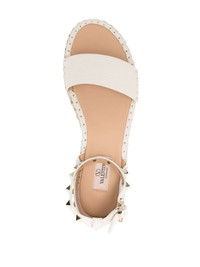 Rockstud 55mm leather espadrilles Highlights - Ivory white - Calf leather - Grained texture - Gold-tone rockstud embellishment - Whipstitch trim - Round open toe - Single toe strap - Buckle-fastening ankle strap - Branded leather footbed - 55mm braided raffia sole Made In Italy Composition Leather 100% SIZE & FIT Measurement CIRCUMFERENCE 9.44 in(24 cm) HEEL 2.16 in(5.5 cm) Sole height 1.18 in(3 cm)