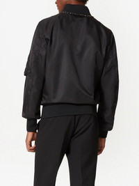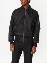 Untitled Studs bomber jacket Valentino Garavani's emblematic Rockstud decorates this casual bomber jacket. The relaxed baseball collar is adorned with the signature detail in matching black. Highlights - Valentino ready to wear - Black - Satin finish - Signature rockstud detailing - Baseball collar - Front zip fastening - Long sleeves - Elasticated cuffs - Sleeve zip pocket - Two press-stud fastening side pockets - Elasticated hem - The full look includes valentino garavani accessories. Made in Italy Composition Outer: Polyamide 100% Lining: Cupro 100%, Polyester 100%, Cotton 83%, Linen/Flax 17% Washing instructions Read Manufacturer Guidelines