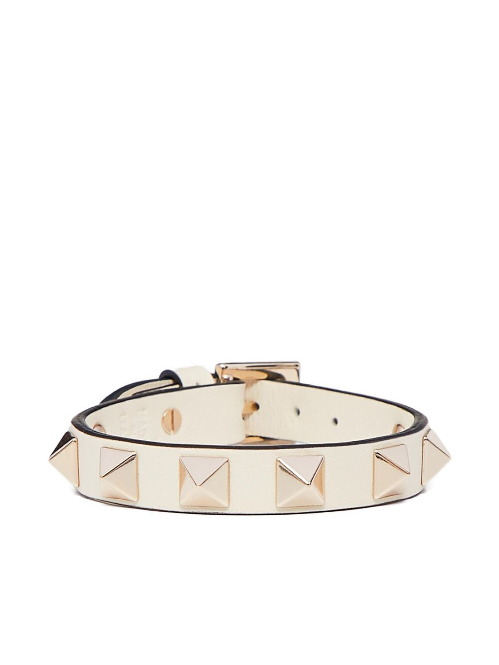 Rockstud leather bracelet Highlights - Ivory - Calf leather - Gold-tone rockstud embellishment - Buckle fastening Made in Italy SIZE & FIT Measurement WIDTH 0.31 in(0.8 cm) TOTAL LENGTH 7.48 in(19 cm)