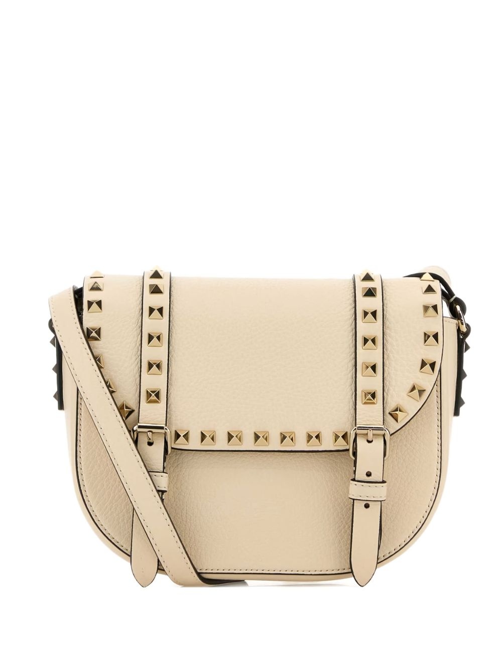 Rockstud cross body bag Highlights - Light beige - Buckle detail - Signature studs - Adjustable shoulder strap - Flap closure - Rear slip pocket Made in Italy Composition Outer: Calf Leather 100% SIZE & FIT Measurement DEPTH 2.36 in(6 cm) HEIGHT 5.9 in(15 cm) WIDTH 7.67 in(19.5 cm)