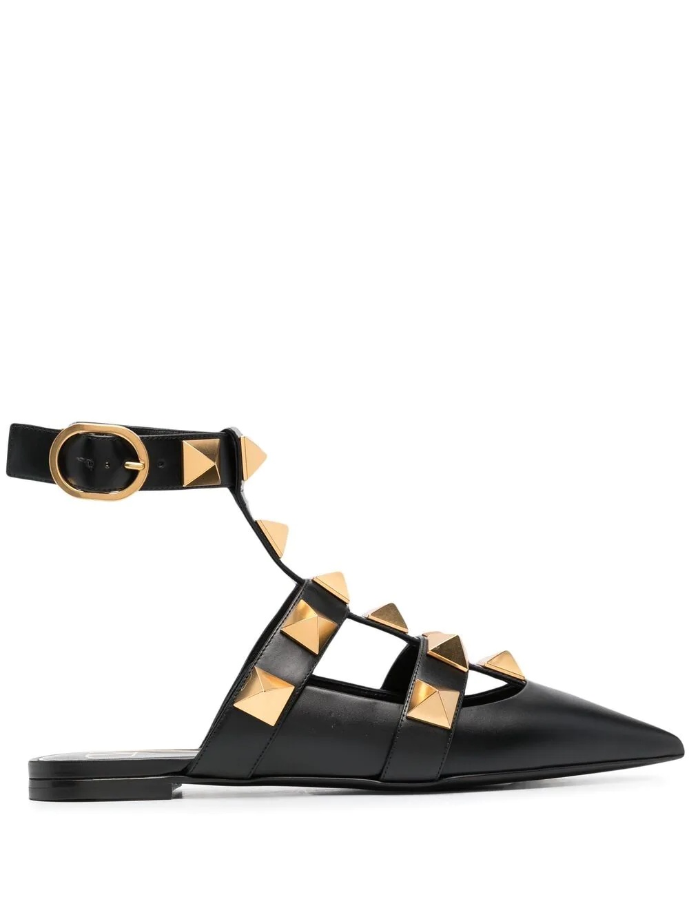 Roman Stud pointed-toe ballerina shoes Highlights - Black - Calf leather - Gold-tone rockstud detailing - Pointed toe - Buckle-fastening ankle strap - Flat leather sole Made in Italy Composition Outer: Calf Leather 100%, Metal 100% Lining: Calf Leather 100%, Lamb Skin 100% Sole: Calf Leather 100% SIZE & FIT Measurement CIRCUMFERENCE 10.23 in(26 cm) HEEL 0.59 in(1.5 cm) HEIGHT 4.33 in(11 cm) Washing instructions Read Manufacturer Guidelines