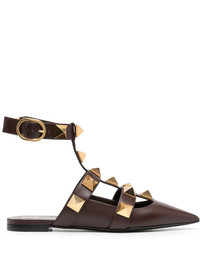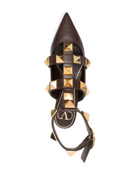 Rockstud-detail pointed-toe pumps You've reached peak shoewear style. That's thanks to the gold-tone Rockstud detailing on these Valentino Garavani pumps. You've always been a step ahead. Highlights - Brown - Leather - Gold-tone rockstud detailing - Pointed toe - Buckle-fastening ankle strap - Flat leather sole Made in Italy Composition Outer: Calf Leather 100%, Metal 100% Sole: Calf Leather 100% Lining: Lamb Skin 100% SIZE & FIT Measurement CIRCUMFERENCE 10.23 in(26 cm) HEEL 0.59 in(1.5 cm) HEIGHT 5.51 in(14 cm) Washing instructions Read Manufacturer Guidelines