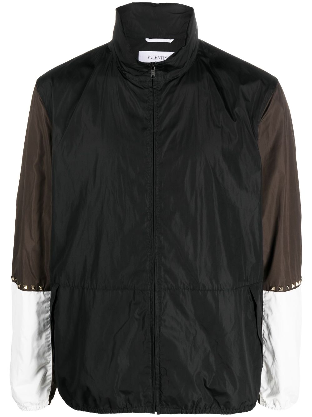 Rockstud-embellished colour-block jacket First unveiled in 2010, the Rockstud soon became synonymous with Valentino Garavani's edgy yet refined brand identity. The unmistakable motif is present on the sleeves of this colour-block jacket, adding a distinctive edge to the piece. Made In Italy Composition Outer: Polyamide 100% Lining: Polyester 100%, Polyamide 100% SIZE & FIT Model measurements Height 6 ft 2 in(1.87 m) Bust/Chest 38.18 in(97 cm) Hips 36.61 in(93 cm) Waist 29.13 in(74 cm) FittingInformation Designed for a slim fit, offering a comfortable fit that sits just away from the body The elasticated hem allows for movement and a comfortable fit Made from a midweight non-stretch fabric This piece fits true to size – take your usual size