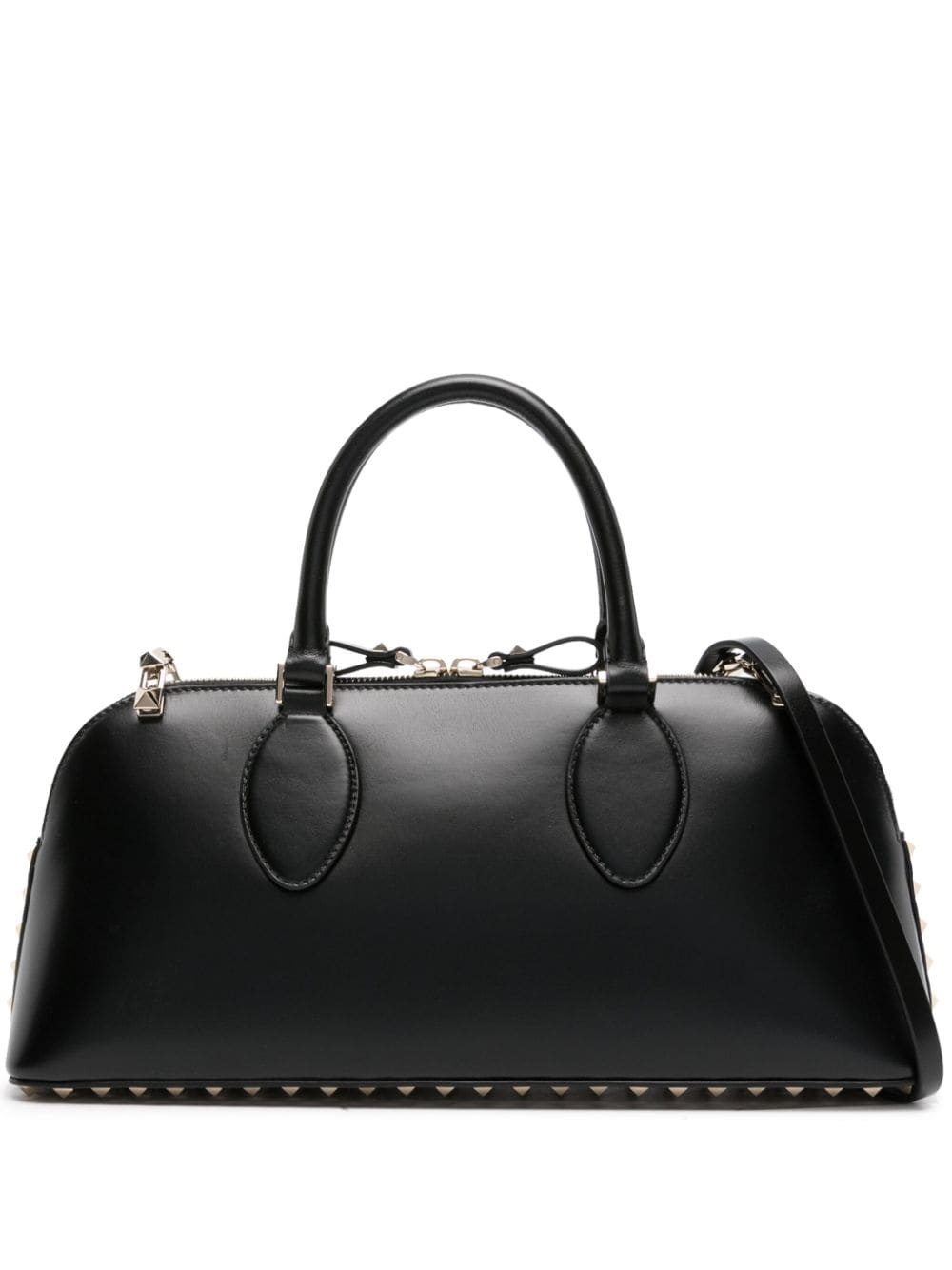 Rockstud-embellished leather tote bag Valentino Garavani's bag is instantly recognisable thanks to the gleaming Rockstud embellishments. Crafted in Italy from leather, a chain-link strap with the signature studs appears as embellishment and as a shoulder strap to the tote silhouette. Highlights - Black tie collection - Black - Calf leather - Gold-tone rockstud embellishment - Two rolled top handles - Leather and chain-link shoulder strap - Top zip fastening - Main compartment - Metal feet Made in Italy Composition Outer: Calf Leather 100% SIZE & FIT Model measurements Height 5 ft 10 in(1.78 m) Bust/Chest 31.49 in(80 cm) Hips 37 in(94 cm) Waist 23.62 in(60 cm) Measurement DEPTH 3.54 in(9 cm) HANDLE 4.33 in(11 cm) HEIGHT 5.9 in(15 cm) STRAP 19.68 in(50 cm) WIDTH 13.38 in(34 cm)