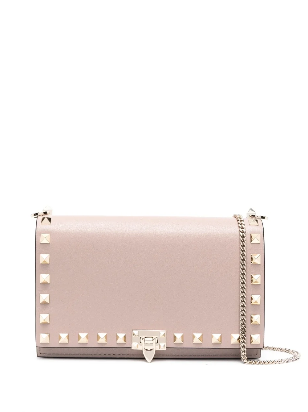Rockstud mini shoulder bag Inspired by the 'bugnatos' seen on palazzo-style buildings in Rome, the Rockstud has become synonymous with Valentino Garavani. It can be seen outlining the compact silhouette of this leather bag, which is fitted with a detachable shoulder strap. Highlights - Brown - Logo print to the front - Signature rockstud embellishment - Foldover top - Main compartment - Chain-link shoulder strap Made in Italy Composition Outer: Calf Leather 100% SIZE & FIT Model measurements Height 5 ft 11 in(1.8 m) Bust/Chest 31.49 in(80 cm) Hips 35.82 in(91 cm) Waist 24.8 in(63 cm) Measurement DEPTH 1.57 in(4 cm) HEIGHT 4.72 in(12 cm) STRAP 22.44 in(57 cm) WIDTH 7.08 in(18 cm)