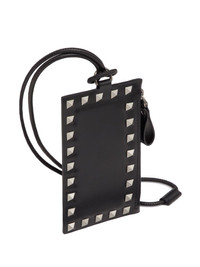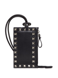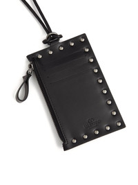 ROCKSTUD CALFSKIN CARD HOLDER WITH NECK STRAP