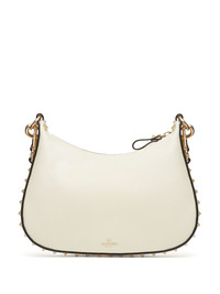small Rockstud Hobo bag Highlights - White - Calf leather - Grained texture - Top zip fastening - Gold-tone rockstud detailing - Single detachable top handle - Adjustable detachable shoulder strap - Logo stamp to the front - Main compartment - Internal slip pocket - Leather lining - This piece comes complete with a protective dust bag. Made in Italy Composition Leather 100% SIZE & FIT Measurement DEPTH 1.96 in(5 cm) WIDTH 9.05 in(23 cm) HEIGHT 7.87 in(20 cm)