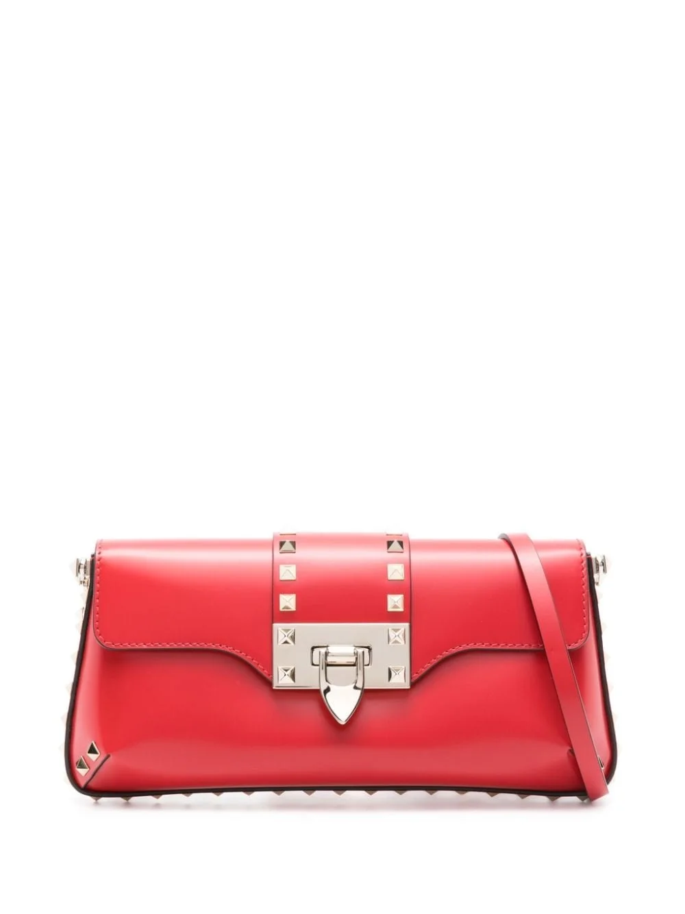 Rockstud leather shoulder bag Crafted from leather, this shoulder bag from Valentino Garavani is decorated with the iconic Rockstud detailing — a signature for the house that was first introduced in 2010. Highlights - Red - Calf leather - Gold-tone rockstud detailing - Foldover top - Single shoulder strap - Internal logo stamp - Main compartment Made in Italy Composition Outer: Calf Leather 100% SIZE & FIT Model measurements Height 5 ft 10 in(1.78 m) Bust/Chest 31.49 in(80 cm) Hips 37 in(94 cm) Waist 23.62 in(60 cm) Measurement DEPTH 2.75 in(7 cm) HANDLE 8.66 in(22 cm) HEIGHT 4.33 in(11 cm) STRAP 11.02 in(28 cm) WIDTH 10.62 in(27 cm)