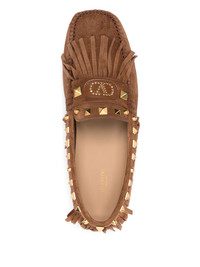 Rockstud loafers Highlights - Camel brown - Branded leather insole - Rubber lug sole - Fringe detailing - Vlogo signature Made in Italy Composition Outer: Calf Suede 100% Lining: Calf Leather 100% Sole: Rubber 100%