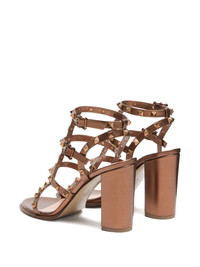 ROCKSTUD METALLIC CALFSKIN LEATHER ANKLE STRAP SANDAL 90 MM