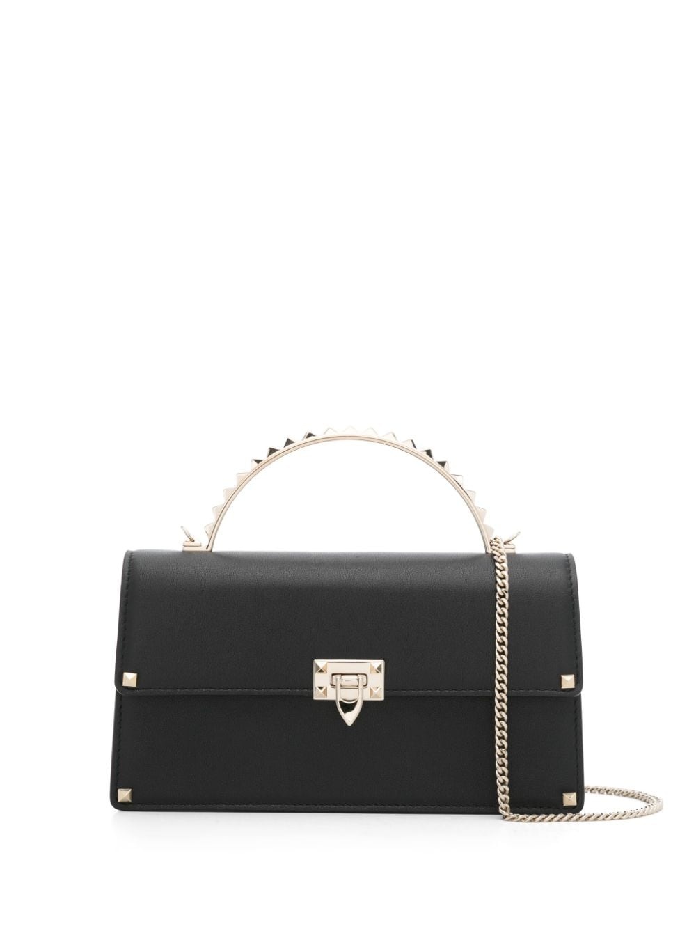 Rockstud mini bag Highlights - Black - Calf leather - Smooth grain - Foldover top - Clasp fastening - Single circular top handle - Detachable chain-link shoulder strap - Signature rockstud detailing - Logo stamp to the rear - Main compartment - Internal card slots - Internal logo stamp - This piece comes complete with a protective dust bag. Made in Italy Composition Outer: Calf Leather 100% SIZE & FIT Model measurements Height 5 ft 10 in(1.78 m) Bust/Chest 33.07 in(84 cm) Hips 36.61 in(93 cm) Waist 24.8 in(63 cm) Measurement DEPTH 1.57 in(4 cm) HANDLE 1.57 in(4 cm) HEIGHT 3.93 in(10 cm) STRAP 47.24 in(120 cm) WIDTH 7.48 in(19 cm)