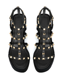 ROCKSTUD ANKLE STRAP WEDGE SANDAL IN CALFSKIN LEATHER 95 MM
