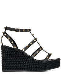 95mm Rockstud sandals Highlights - Black - Calf leather - Rockstud embellishment - Caged design - Buckle-fastening adjustable ankle strap - Branded leather insole - Silk cord 95mm wedge heel Imported Composition Calf Leather 100% SIZE & FIT Measurement Sole height 1.37 in(3.5 cm) HEEL 4.13 in(10.5 cm) Washing instructions Read Manufacturer Guidelines