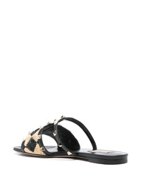 Rockstud slides Highlights - Black - T-bar strap - Round open toe - Leather sole Made in Italy Composition Outer: Calf Leather 100%, Straw 100% Sole: Calf Leather 100% Lining: Calf Leather 100%