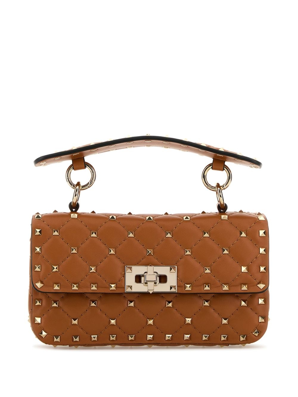 Rockstud Spike tote bag Highlights - Camel brown - Foldover top - Turn-clasp fastening - Single top handle - Signature rockstud detailing Made in Italy Composition Outer: Calf Leather 100%