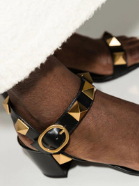 60mm Roman Stud sandals The Rockstuds first introduced in 2010 go supersized with the introduction of the Roman Stud. These mid-heel, black leather sandals feature the signature studs across the straps in gold-tone hardware. Highlights - Black - Leather - Signature roman stud detailing - Branded insole - Buckle-fastening ankle strap - 60mm block heel Made in Italy Composition Lining: Lambskin 100% Outer: Calf Leather 100%, Metal 100% Sole: Calf Leather 100% SIZE & FIT Model measurements Height 5 ft 10 in(1.77 m) Bust/Chest 32.28 in(82 cm) Hips 35.03 in(89 cm) Waist 25.19 in(64 cm) FittingInformation This piece fits true to size. We recommend you get your regular size Measurement HEEL 2.36 in(6 cm) Washing instructions Read Manufacturer Guidelines