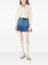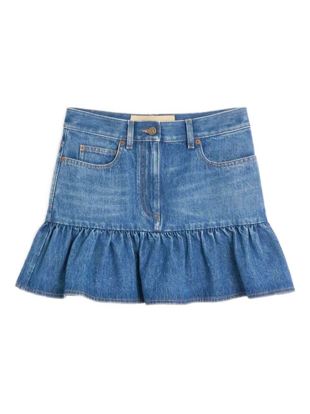 ruffled denim mini skirt Highlights - Medium blue - Frayed hem - Five-pocket styling - Belt loops - Back logo patch Made In Italy Composition Cotton 100% Washing instructions Read Manufacturer Guidelines