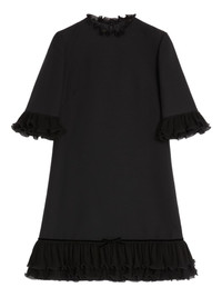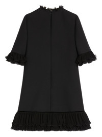 ruffled mini dress Highlights - Black - Pleated ruffle trim - Velvet ribbon detail - Rear zip fastening - Half-length sleeves - Ruffled high neck Made in Italy Composition Silk 100% Washing instructions Read Manufacturer Guidelines