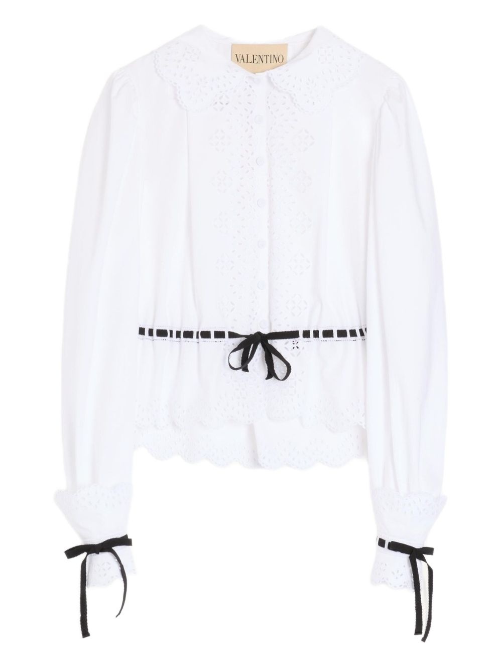 sangallo-embroidered ribbon-detailed shirt Highlights - White - Sangallo embroidery - Ribbon detailing - Button front closure - Long sleeves Made in Italy Composition Cotton 100% Washing instructions Read Manufacturer Guidelines