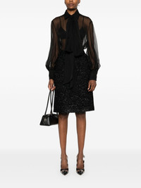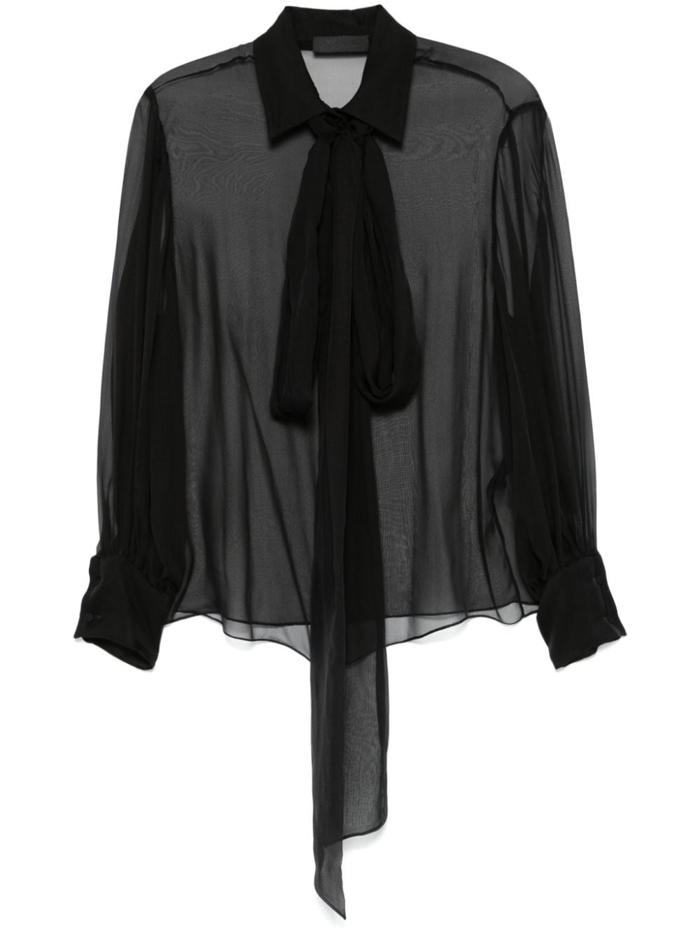 scarf-detail shirt Highlights - Black - Silk - Chiffon crepe - Sheer - Scarf detailing - Concealed front button fastening - Classic collar - Long sleeves with buttoned cuffs - Unlined - Straight hem Made in Italy Composition Silk 100% SIZE & FIT Model measurements Height 5 ft 11 in(1.8 m) Bust/Chest 31.49 in(80 cm) Hips 36.61 in(93 cm) Waist 24.4 in(62 cm) FittingInformation Designed to be unstructured, offering a loose fit throughout Made from a lightweight non-stretch fabric