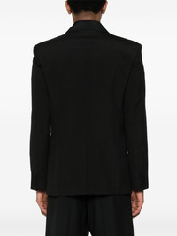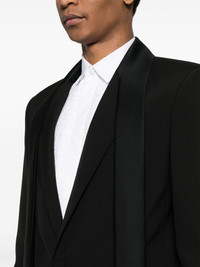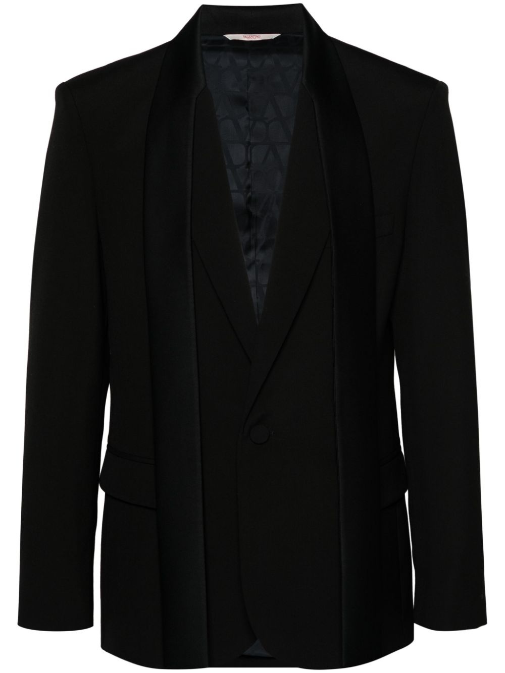 scarf-detail wool blazer Highlights - Black - Wool - Peak lapels with scarf detailing - Shoulder pads - Long sleeves with buttoned cuffs - Two side flap pockets - Internal slip pocket - Internal logo tag - Logo-jacquard lining - American rear vent - Front button fastening Made In Italy Composition Outer: Wool 100% Lining: Cupro 100% Polyester 100% SIZE & FIT Model measurements Height 6 ft 2 in(1.87 m) Bust/Chest 37 in(94 cm) Hips 33.85 in(86 cm) Waist 27.95 in(71 cm) FittingInformation Designed for a slim fit, offering a comfortable fit that sits just away from the body The internal shoulder pads offer a structured shape Made from a midweight non-stretch fabric This piece fits true to size – take your usual size Washing instructions Dry Clean Only