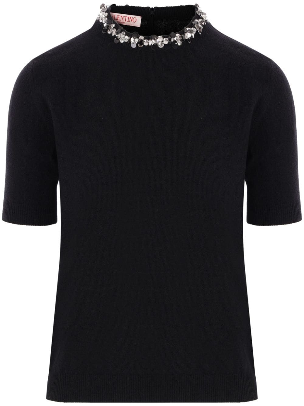 embroidered wool sweater Highlights - Black - Virgin wool - Sequin detailing - High neck - Short sleeves - Straight hem - Concealed rear zip fastening - The model is 176 cm / 5'9'' tall and wears an italian size s Made in Italy Composition Virgin Wool 100% Washing instructions Read Manufacturer Guidelines