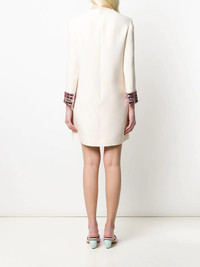 sequin embroidered mini dress Keep it short and sweet. Crafted from an ivory virgin wool-silk blend, this sequin embroidered mini dress from Valentino proves that not all that glitters is gold. Sometimes it's something way better. Featuring long sleeves, a round neck, a concealed rear zip fastening, sequin embroidery, a curved hemline and a flared style. Made in Italy Composition Outer: Virgin Wool 65%, Silk 35% Lining: Viscose 91%, Spandex/Elastane 9% SIZE & FIT Model measurements Height 5 ft 9 in(1.76 m) Bust/Chest 31.88 in(81 cm) Hips 37 in(94 cm) Waist 24.4 in(62 cm) FittingInformation This piece fits true to size. We recommend you get your regular size Cut for a loose fit Made with a mid-weight fabric Washing instructions Read Manufacturer Guidelines