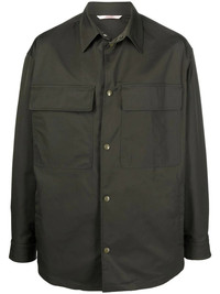 shirt-style jacket Crafted for a utilitarian feel, this khaki green jacket from Valentino Garavani is designed in an overshirt style with press-stud buttons through the front. Made in Italy Composition Outer: Polyester 64%, Elastomultiester 36% Lining: Polyester 100% SIZE & FIT Model measurements Height 6 ft 1 in(1.85 m) Bust/Chest 37.79 in(96 cm) Hips 37.4 in(95 cm) Waist 30.7 in(78 cm) FittingInformation This piece fits true to size. We recommend you get your regular size Cut for a loose fit Made with a mid-weight non-stretch fabric Washing instructions Read Manufacturer Guidelines