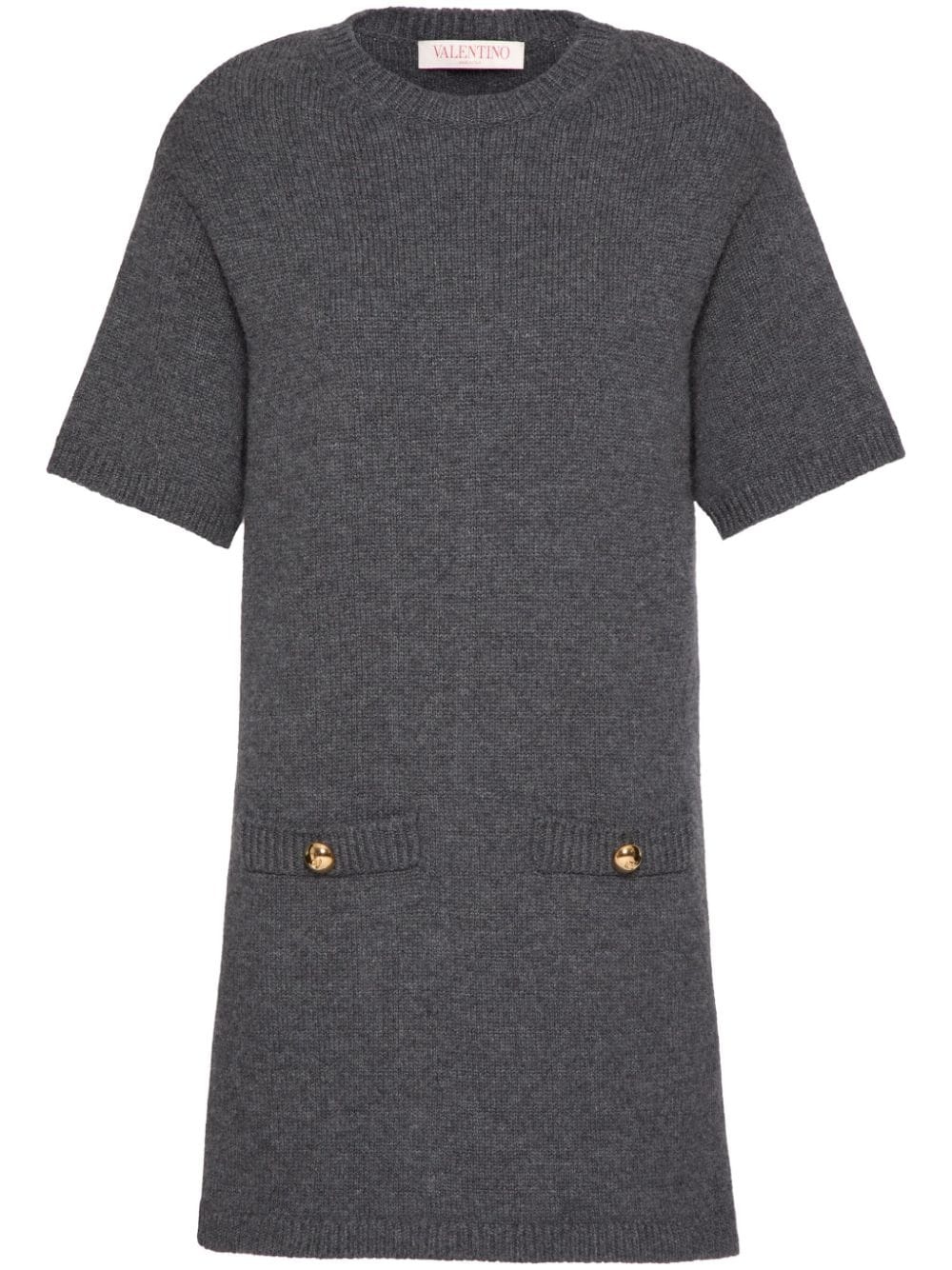 wool sweater Highlights - Grey - Virgin wool - Decorative button detailing - Ribbed trim - Crew neck - Two front welt pockets - Short sleeves - Straight hem Made in Italy Composition Virgin Wool 100%