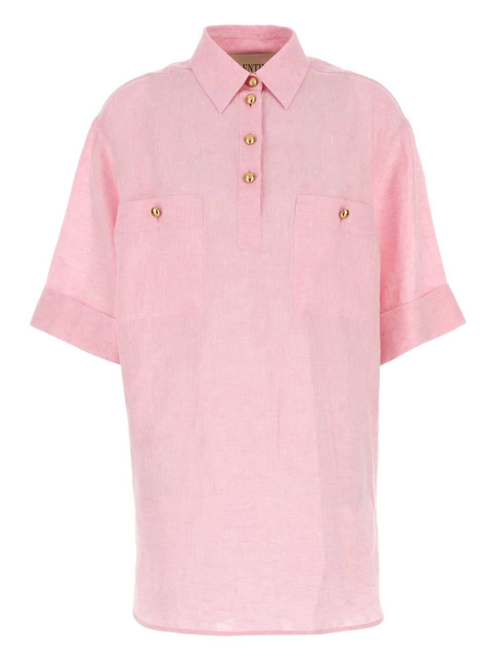 short-sleeves linen blouse Highlights - Pink - Short sleeves - Button fastening - Patch pockets - Gold-tone buttons Made in Italy Composition Linen/Flax 100% Washing instructions Read Manufacturer Guidelines