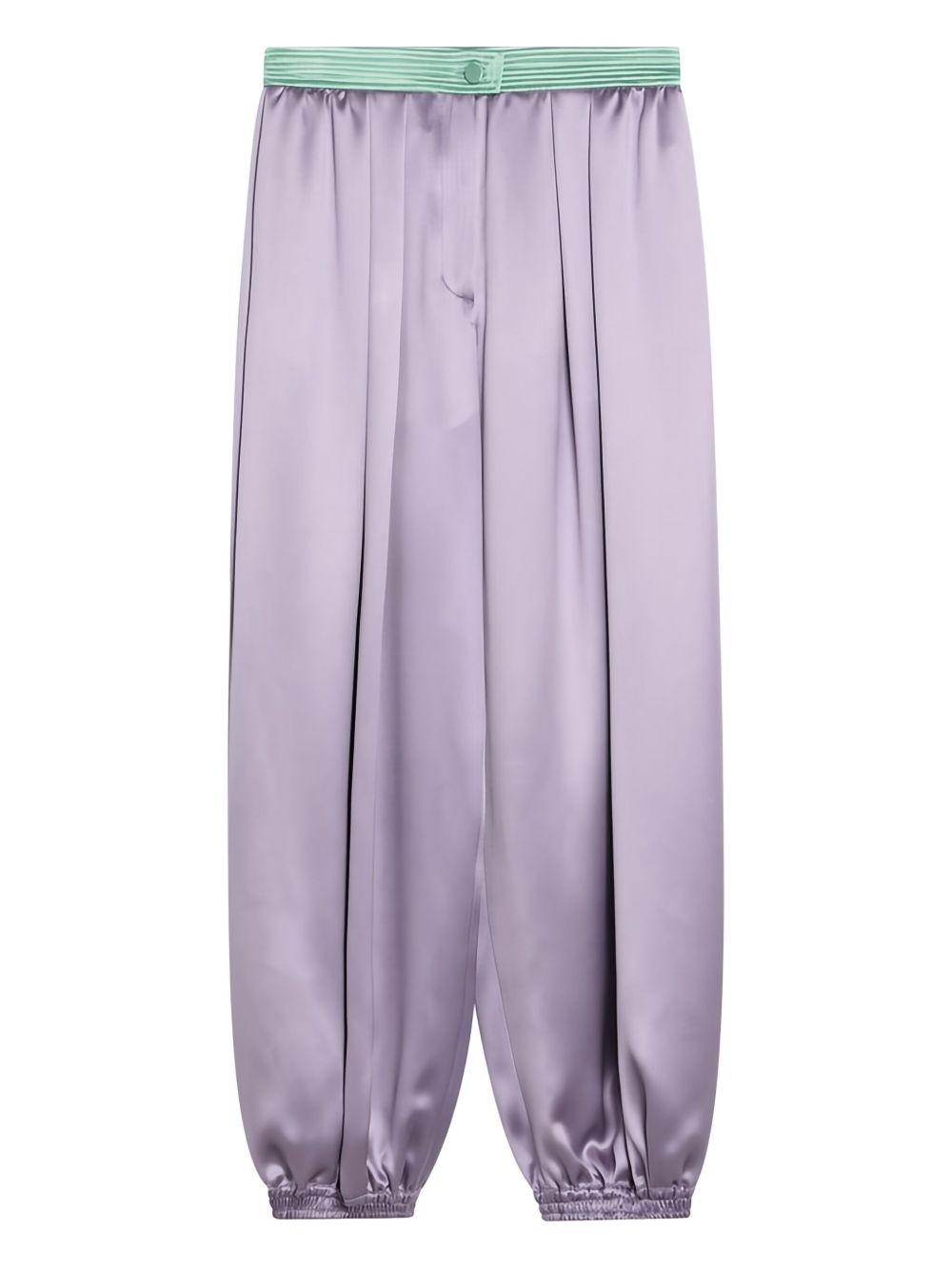 silk trousers Highlights - Lilac purple - Front button and zip fastening - Two rear welt pockets - Elasticated ankles - Satin finish Made in Italy Composition Silk 100%