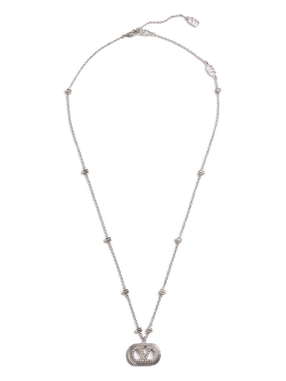 VLogo Signature necklace Highlights - Silver-tone - Rhodium finish - Logo pendant - Pearl-embellishment - Swarovski crystal embellishment - Adjustable length - Lobster claw fastening Made in Italy