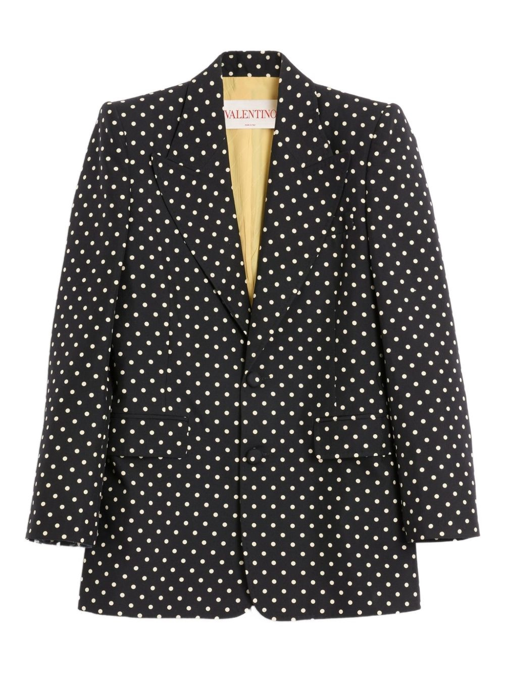 Plusdepois-print single-breasted blazer Highlights - Black - Front button fastening - Polka dot print - Two front flap pockets - Peak lapels Made in Italy Composition Outer: Silk 100% Lining: Acetate 75%, Silk 25%