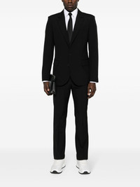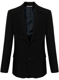 single-breasted wool blazer Highlights - Black - Wool - Notched lapels - Front button fastening - Long sleeves - Curved hem - Chest welt pocket - Two side flap pockets Made in Italy Composition Outer: Wool 100% Lining: Cupro 100%, Polyester 100% SIZE & FIT Model measurements Height 6 ft 0 in(1.84 m) Bust/Chest 35.82 in(91 cm) Hips 37 in(94 cm) Waist 28.34 in(72 cm) FittingInformation Designed for a slim fit, offering a comfortable fit that sits just away from the body The internal shoulder pads offer a structured shape Made from a midweight non-stretch fabric This piece fits true to size – take your usual size