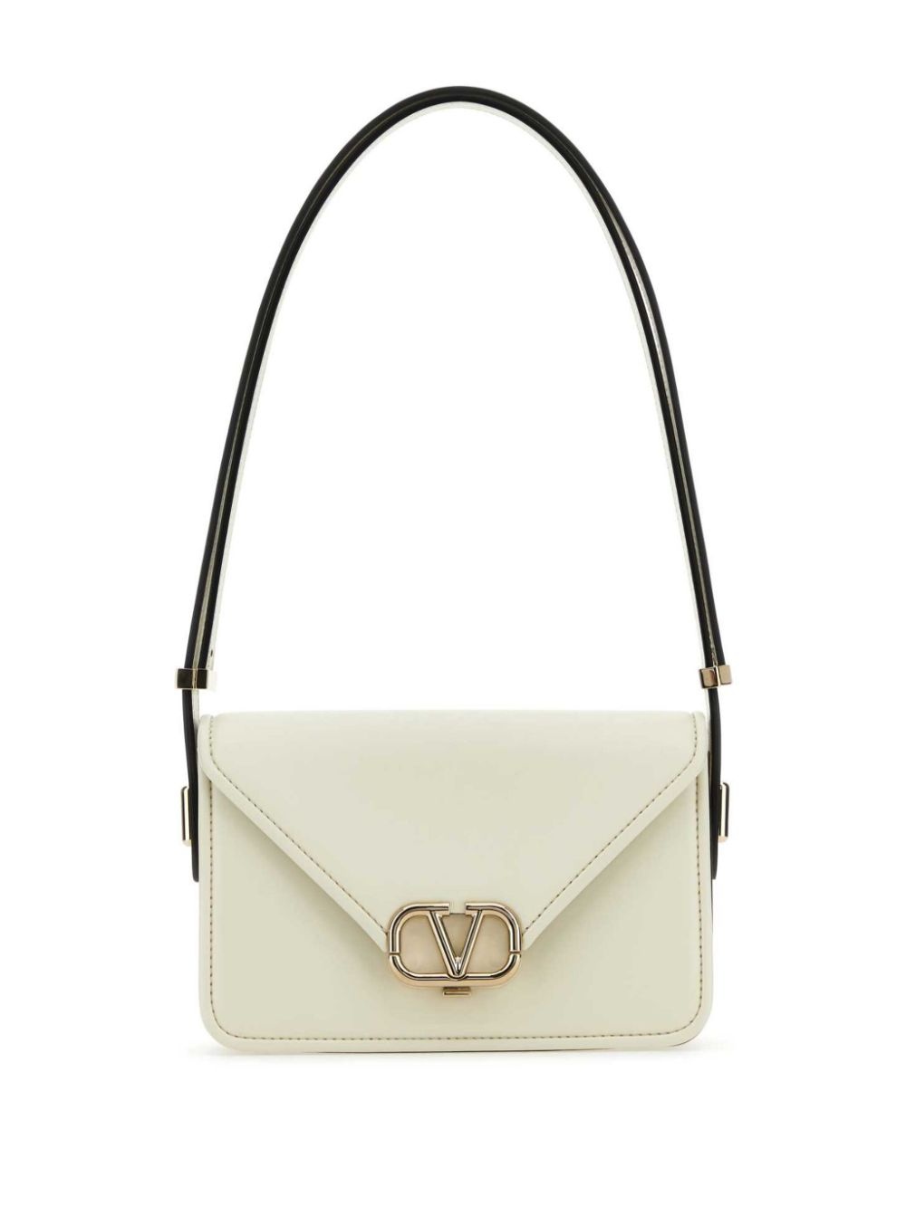 small Letter shoulder bag This Valentino Garavani shoulder bag honours the brand's iconic VLogo Signature with a gleaming gold-tone plaque at the centre of the leather construction. A versatile design, it can be worn in many ways to its adjustable top handle. Highlights - Off-white - Calf leather - Lambskin - Vlogo signature gold-tone plaque - Logo print to the rear - Gold-tone hardware - Adjustable top handle - Foldover top with press-stud fastening - Main compartment - Contrast lining Made in Italy Composition Outer: Calf Leather 100%, Metal 100% Lining: Lambskin 100% SIZE & FIT Measurement WIDTH 7.48 in(19 cm) HEIGHT 4.33 in(11 cm) DEPTH 1.96 in(5 cm) STRAP 19.68 in(50 cm) Washing instructions Read Manufacturer Guidelines